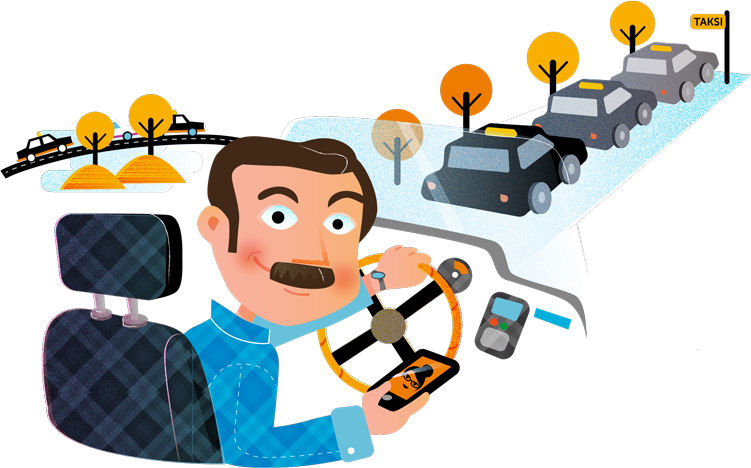 Taksinkuljettaja lopettaa vuoronsa normaalisti autossa.